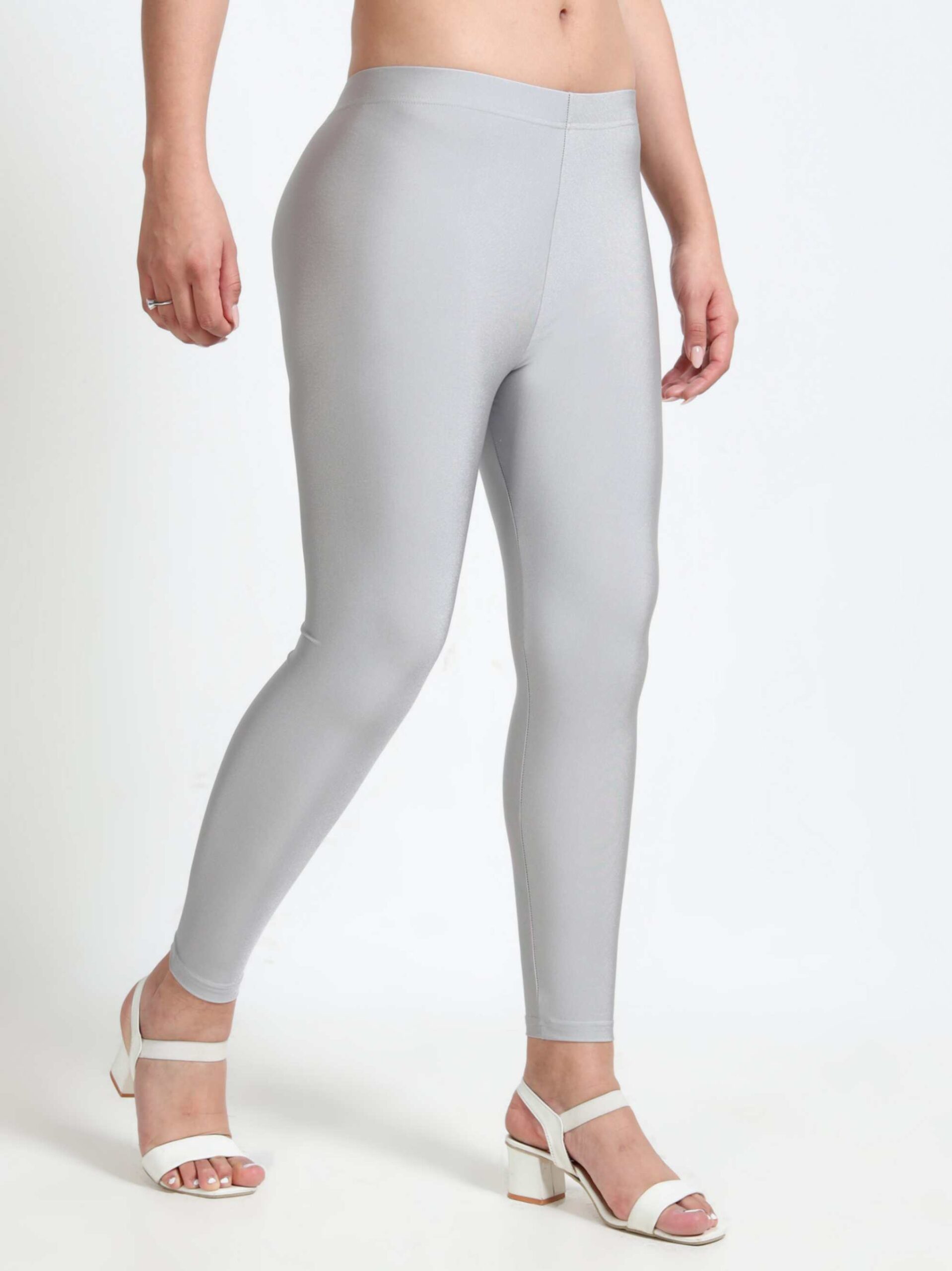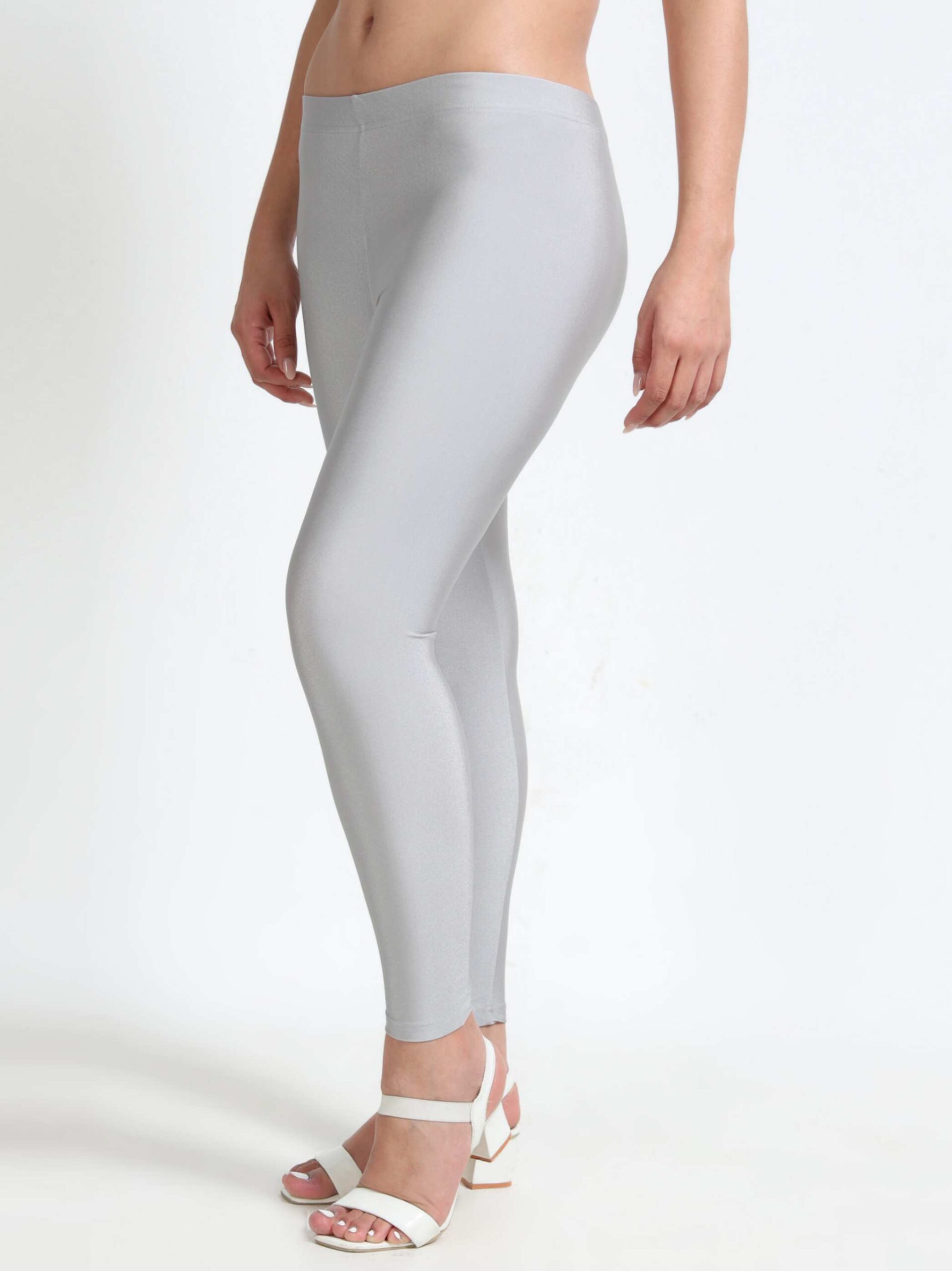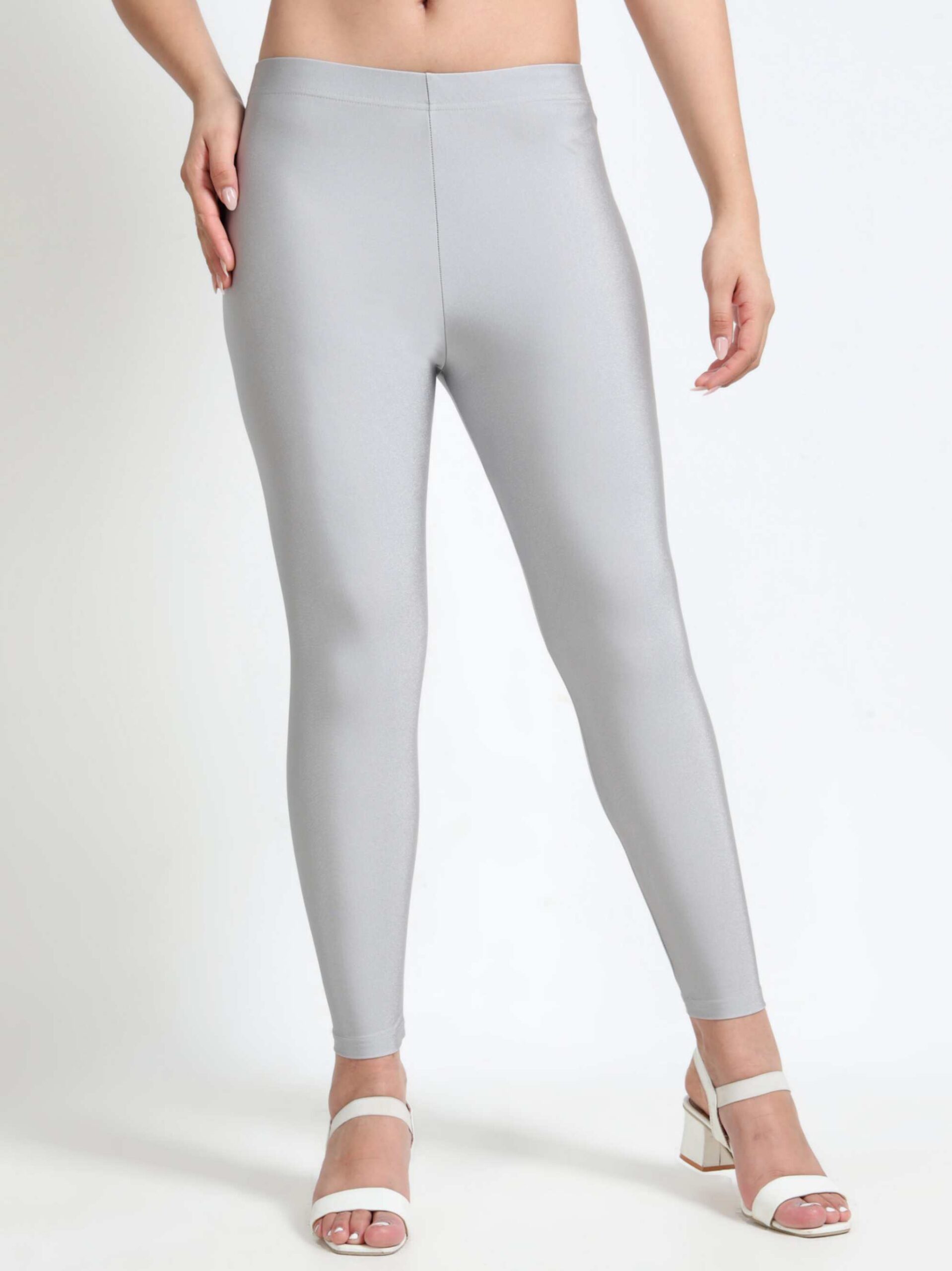 Silver Grey Nylon Spandex Shimmer Leggings | VSTFAB's Chic Sparkle